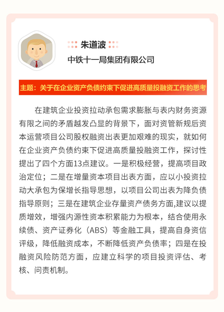 近年來,我國建筑行業(yè)產(chǎn)業(yè)結(jié)構(gòu)不斷調(diào)整,智能化、信息化、綠色低碳、國際化、城鎮(zhèn)化給建筑行業(yè)帶來諸多發(fā)展機(jī)會,如棚改、地下綜合管廊、綠色建筑、裝配式建筑、智慧城市等,但機(jī)遇與挑戰(zhàn)同在,資金緊張成為制約建筑企業(yè)快速發(fā)展的重要因素。根據(jù)中共中央辦公廳 國務(wù)院辦公廳印發(fā)《關(guān)于加強(qiáng)國有企業(yè)資產(chǎn)負(fù)債約束的指導(dǎo)意見》,要通過建立和完善國有企業(yè)資產(chǎn)負(fù)債約束機(jī)制,強(qiáng)化監(jiān)督管理,促使高負(fù)債國有企業(yè)資產(chǎn)負(fù)債率盡快回歸合理水平,推動(dòng)國有企業(yè)平均資產(chǎn)負(fù)債率到2020年年末比2017年年末降低2個(gè)百分點(diǎn)左右。企業(yè)如何在企業(yè)資產(chǎn)負(fù)債約束下高質(zhì)量開展投融資工作,成為促進(jìn)建筑企業(yè)快速發(fā)展必須研究的重要課題。2020年7月2日天揚(yáng)君合財(cái)稅服務(wù)集團(tuán)邀請業(yè)內(nèi)專家以網(wǎng)絡(luò)會議方式齊聚一堂,成功舉辦了“第四期天揚(yáng)財(cái)經(jīng)沙龍-建筑集團(tuán)產(chǎn)融結(jié)合經(jīng)驗(yàn)與創(chuàng)新交流會”。與會的各位專家分享了“產(chǎn)融結(jié)合”方面的實(shí)踐案例和政策思考。部分觀點(diǎn)摘錄如下: