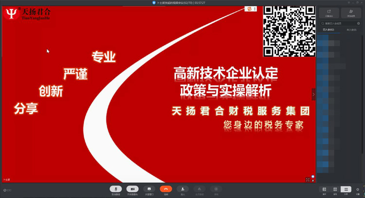 2020年2月18日,天揚(yáng)君合財(cái)稅服務(wù)集團(tuán)第二事業(yè)部業(yè)務(wù)總監(jiān)卜士波受邀參加了中國(guó)能源建設(shè)集團(tuán)山西省電力勘測(cè)設(shè)計(jì)院有限公司舉辦的“高新技術(shù)企業(yè)認(rèn)定政策與實(shí)操解析”線上移動(dòng)課堂,中國(guó)能源建設(shè)集團(tuán)山西省電力勘測(cè)設(shè)計(jì)院有限公司及下屬公司近70人參加了本次移動(dòng)課堂。