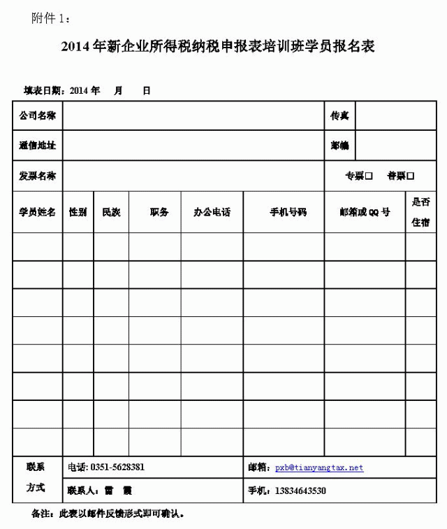 《2014年新企業(yè)所得稅納稅申報(bào)表培訓(xùn)班學(xué)員報(bào)名表》(見附件)